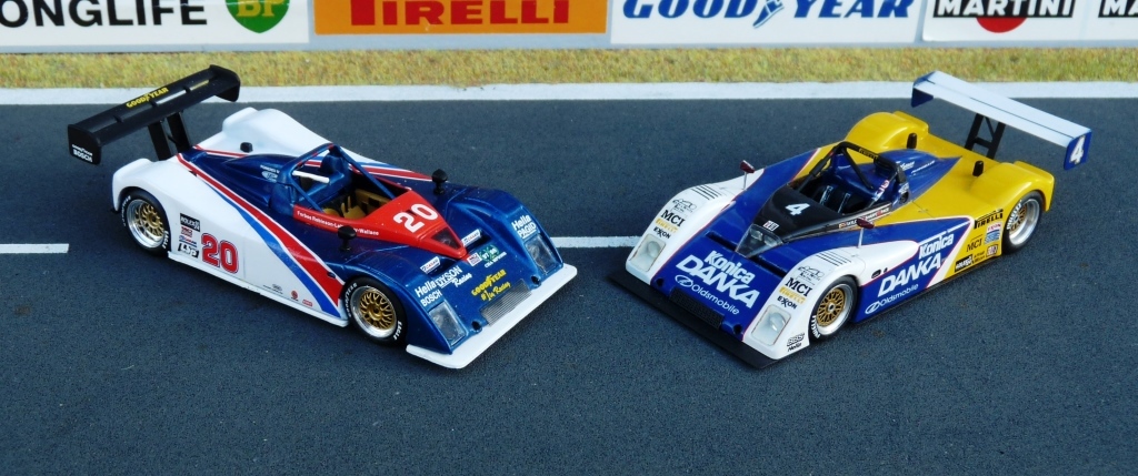 Resincast- und Kleinserienmodell (Bausatz): links Riley&Scott Ford, Daytona-Sieger 1999 von Spark; rechts Riley&Scott Oldsmobile, Daytona-Sieger 1996 von Provence Moulage