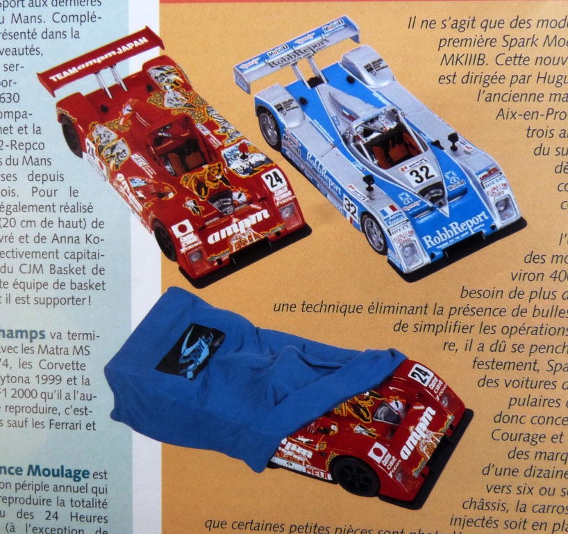 Die ersten Spark-Modelle wurden im Jahr 2000 im französischen Modell-Journal „Auto Modelisme“ vorgestellt, hier zwei Riley&Scott, Le Mans 1999.